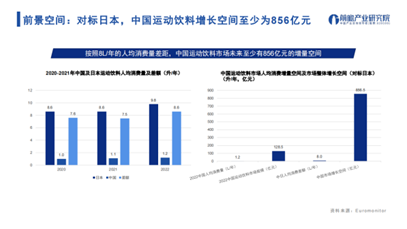 这是前瞻对于行业乐观预测的原因之一:前瞻报告预测中国运动饮料市场未来至少有856亿的市场增量空间。而在行业发展过程中,电解质水将更趋专业化、细分化。